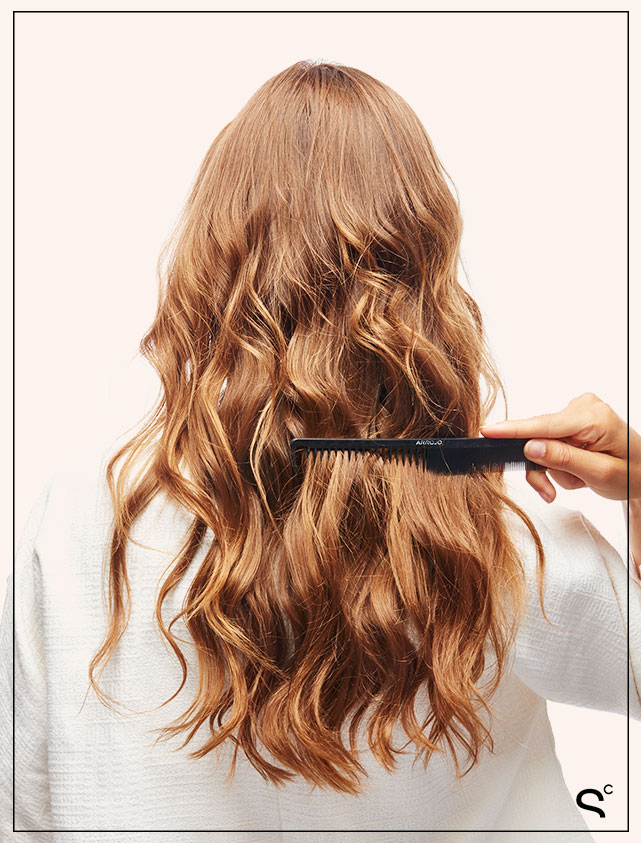 4. Comb through with a wide-tooth comb to loosen up the waves and tease the bottom, adding lots of texture spray.