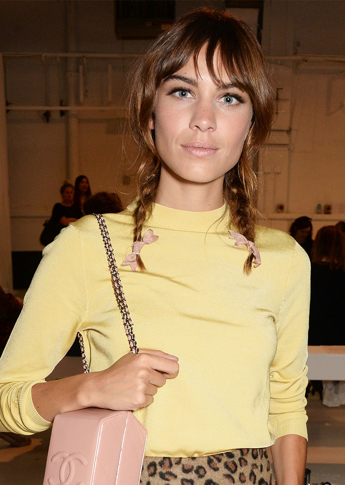 Here, the TV host, model and designer opts for choppy, lived-in braids with tiny bows that match her Chanel purse. So chic.