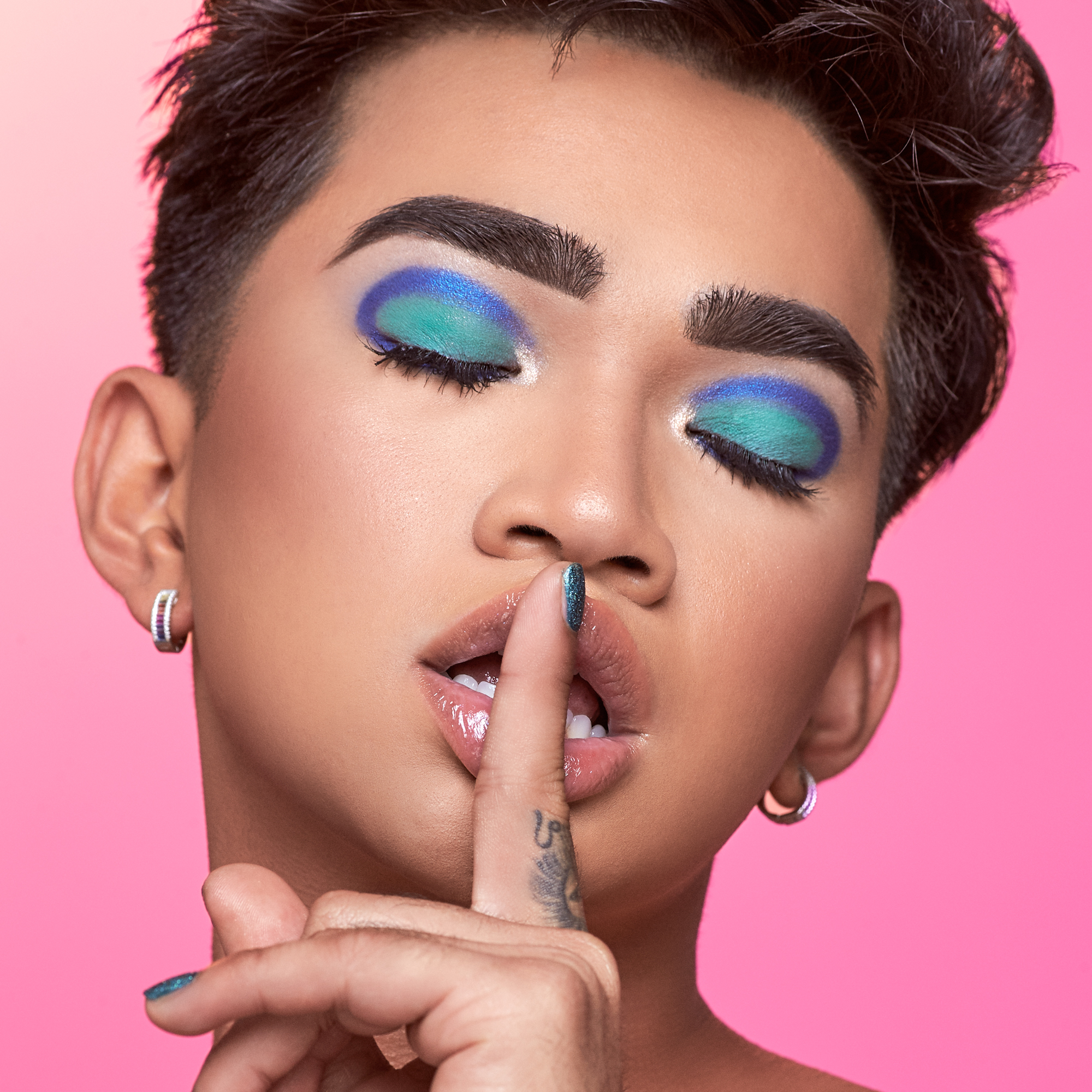 “We really focused on how colorful I am, everything is very colorful, And I feel like my entire vibe and aesthetic right now is just very 80s and 90s. Like, retro colors but with more modern and hip strategies. I feel like I’m trying to marry editorial looks and colors with the aesthetic of modern, Instagram makeup, really. I feel like that [aesthetic] is really in right now, like Euphoria’s makeup, and just like, f**king color.” Speaking of Euphoria, bold and editorial makeup inspired by the series is the one trend he predicts will take off in 2020.