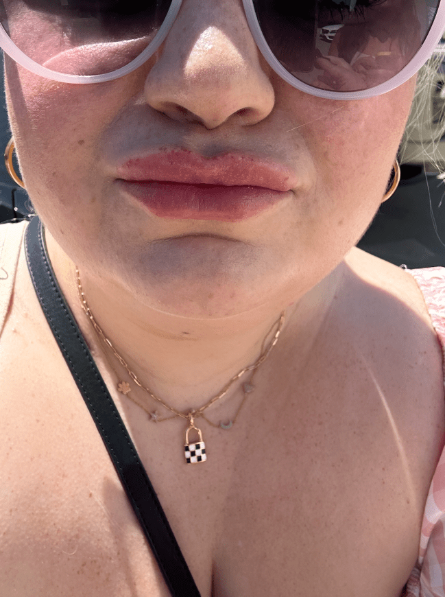 As you can tell, it works. But you have to be ready to feel the burn. I made a friend try it at dinner last night and she didn’t mind the sting and was able to keep it on. I think the key is to just apply one layer and stay inside your lip line — unless you’re tougher than me.