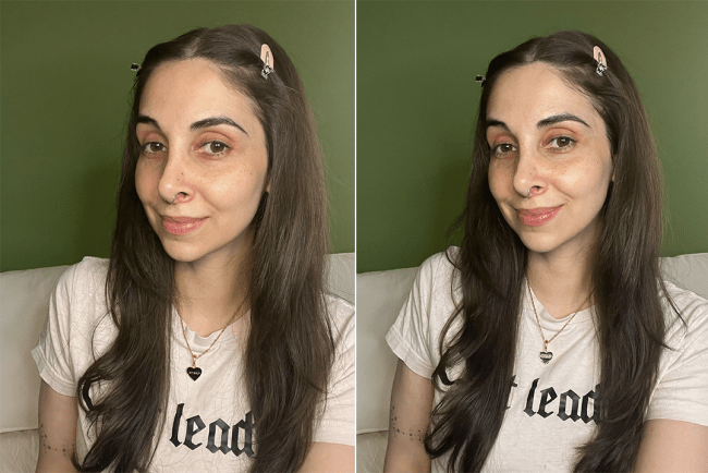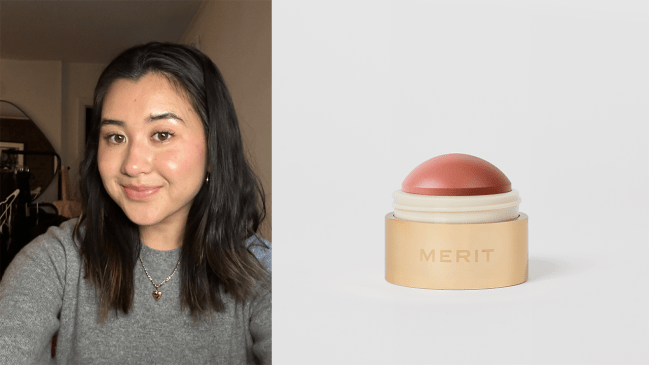“Merit just knows how to make a good, convenient makeup product. Its Flush Balm blushes are truly elite in that they create a natural pop of color that’s not too much, and not too little—the Goldilocks of blushes if you will! In the photo above, I only applied the shade Cheeky to my right side (left in the photo), so you can see what one side looks like with blush and what one side looks like without. It’s fairly long-lasting, although since I have oily skin I do find that I need to touch up mid-day.” — Gina Vaynshteyn, Senior Commerce Director