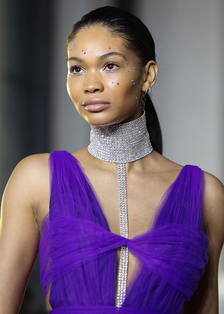 Mane genius Justine Marjan is responsible for this bejeweled chain ponytail that we are definitely going to spend however long it takes trying to replicate.