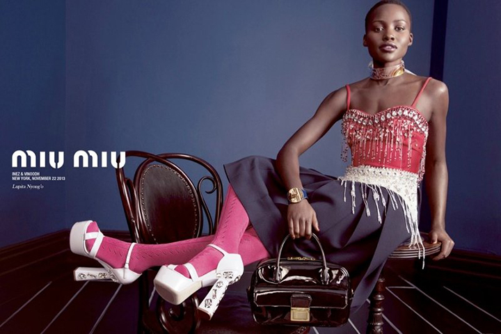 Whatever happens with her acting career, one thing’s abundantly clear: Nyong’o is now poised to become a major fashion face, too. She’s one of four stars—along with Elle Fanning, Elizabeth Olsen, and Bella Heathcote—to front Miu Miu‘s latest campaign, then there’s the stunning Dazed & Confused cover on which she’s wearing bold Prada, and photographed by Sharif Hamza.