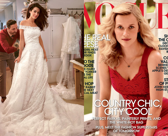 The newlywed told Vogue of her dress selection: “George and I wanted a wedding that was romantic and elegant, and I can’t imagine anyone more able than Oscar to capture this mood in a dress…meeting him made the design process all the more magical, as he is so warm and such a gentleman.”