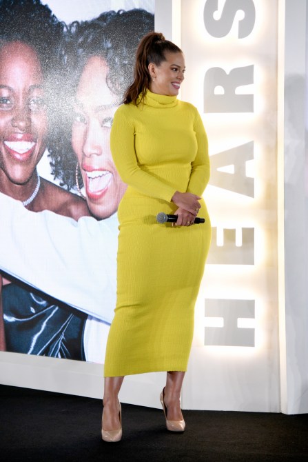 This isn’t the only time Graham’s sported lime green recently. Last month, she headed to a Hearst event wearing a figure-hugging chartreuse sweater dress. Though the piece skewed yellow, where last night’s matching set skewed green, both were clearly cut from the same color family.