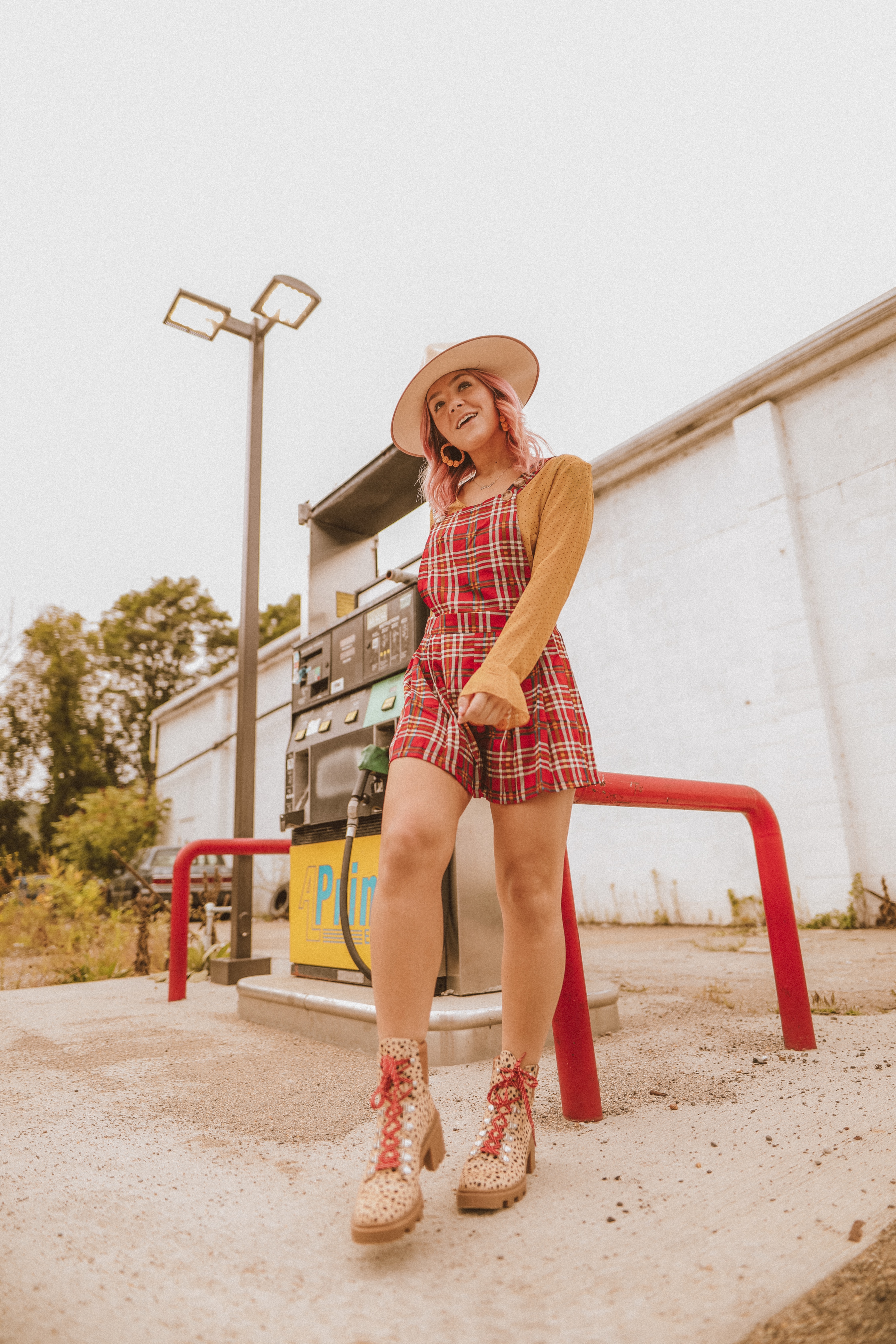 Romper: Missguided | Blouse: Missguided | Earrings: Missguided | Hat: Lack of Color | Boots: Lulus