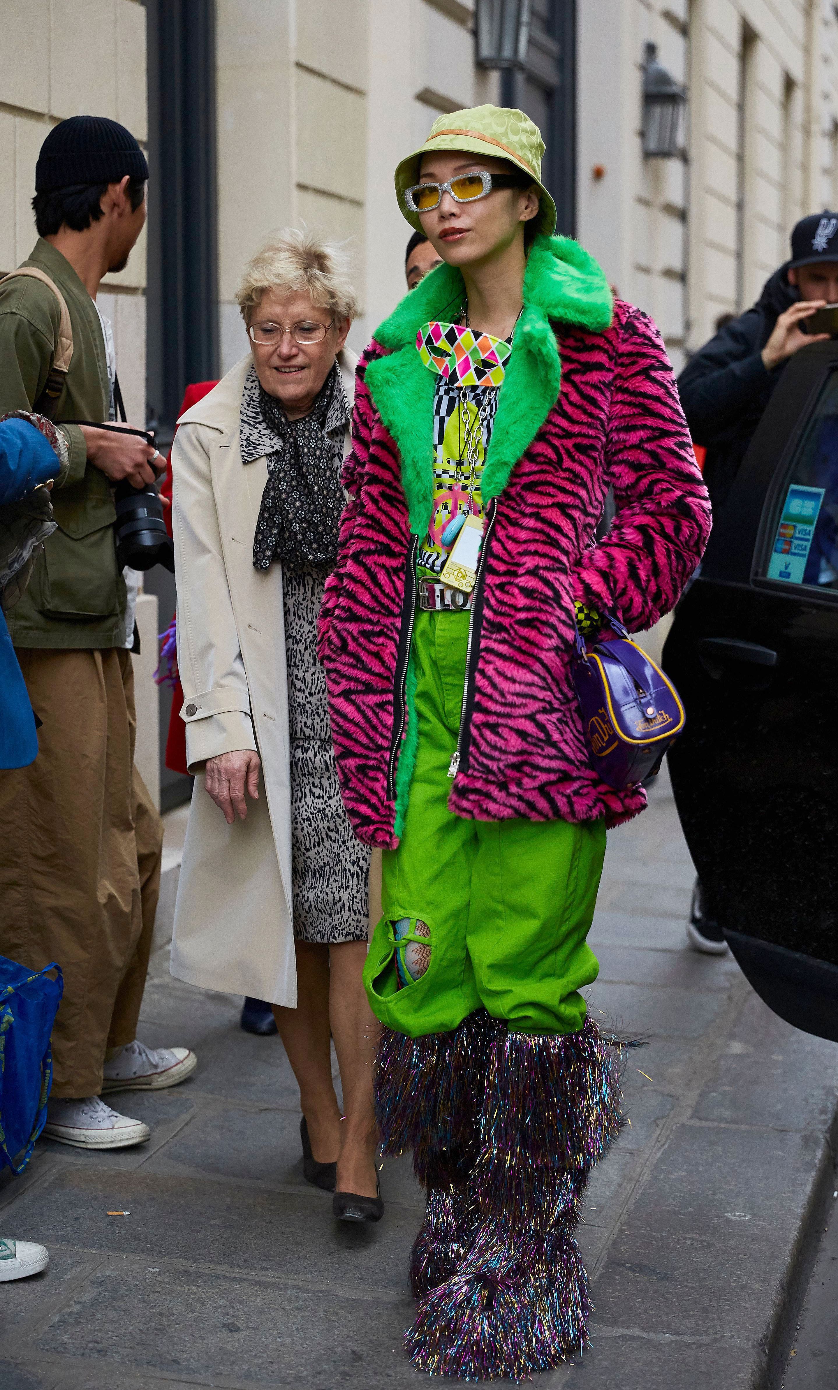 These Paris Fashion Week guests have embracing the wilder side of fashion—bold patterns, flashy sequins, statement sunglasses and neon galore. Unlike the street style in Milan, London and New York, there are a lot few puffer coats this time around. More guests are showing their skin out in the Parisian streets, and we’re here for it.