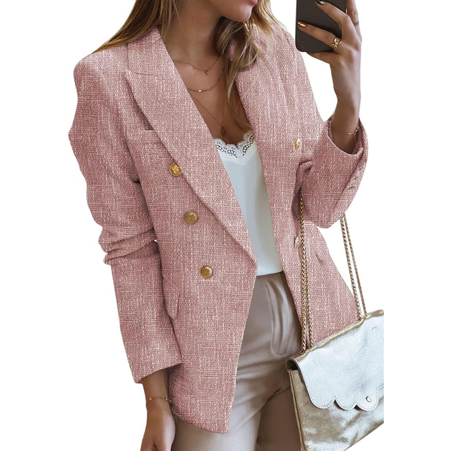 This tweed-inspired blazer from Happy Sailed reads sophistication with its double-breasted design, long sleeves with buttons, front side pockets and lapel collar. Wear it on any occasion that requires a dressier jacket—all the colors are worthy of a buy!