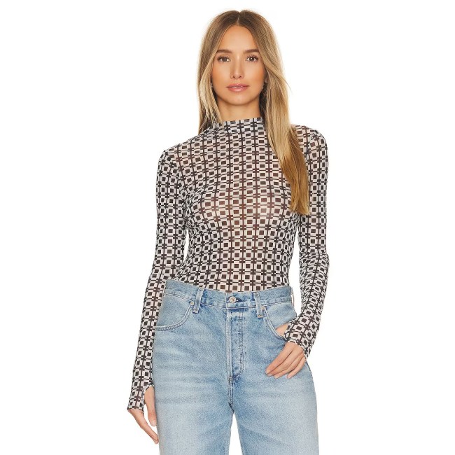 While there are tons of mesh turtlenecks out there, Swift’s going out top was actually a crewneck, just like this discounted pick from Miaou. Now, you can play around with neck accessories, including chains, chokers, and even scarves.