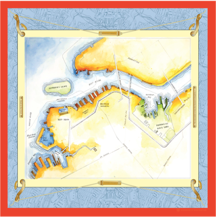 And now I’m taking my adoration of the sea to the next level with a line of new scarves unveiled by Brooklyn, New York, label Gunner’s Daughter. The brand, designed and produced by founder Erin Goodman, launched in May with a small collection of maritime-inspired canvas and leather bags and small leather goods, which I love. The Wallabout bag is the perfect size for toting around your iPad or just filling with magazines for a lazy day on your schooner (boat not included).