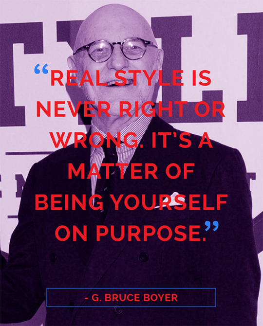 65. “Real style is never right or wrong. It’s a matter of being yourself on purpose.” – G. Bruce Boyer
