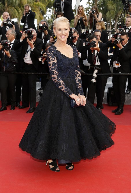 Helen Mirren in Bruce Oldfield Couture, Chopard jewelry, and an Ethan K bag
