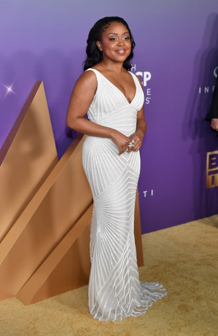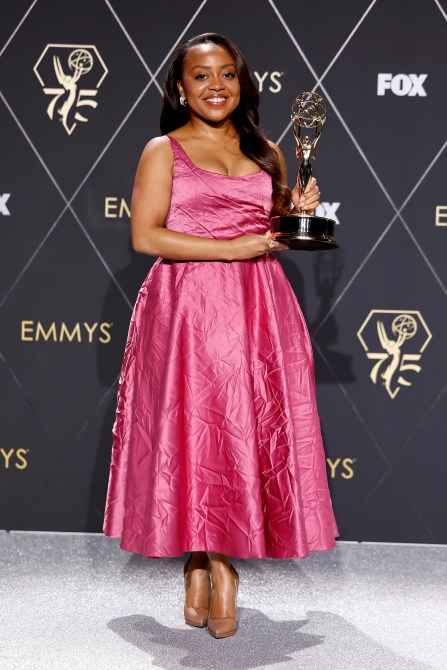 Quinta Brunson wears Carolina Herrera.