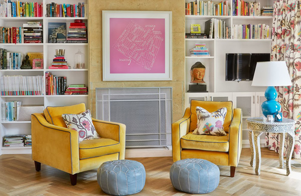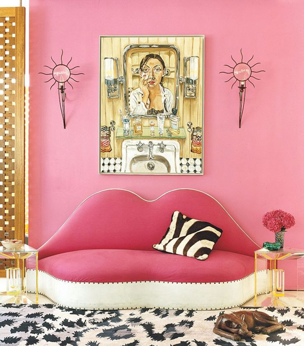 Don’t be afraid to get creative when decorating with the color pink! Source cool objects in the color—everything from mini lucite figures to pink shoes—placing them on a coffee table, a nightstand, or a mantel.