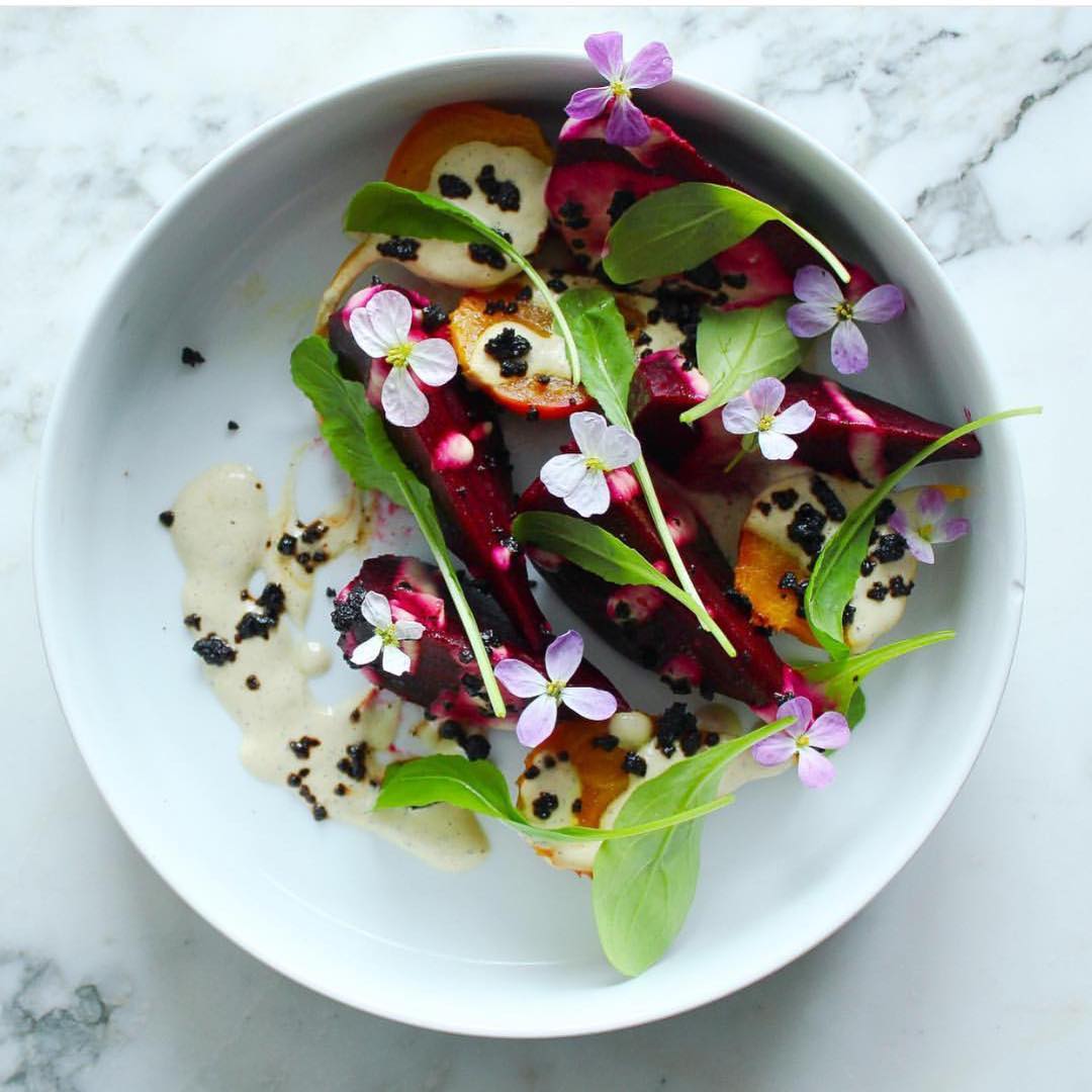 “To make an impression on your guests, throw a simple garnish on your finished platter: mMicrogreens are easy and beautiful, or take an element from the dish, such as whole herb sprigs or extra spice, and add just a small amount to create a pop for the eye.” –Willcox