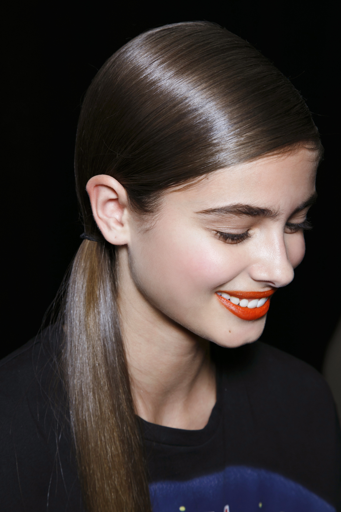 “A combo is always good to create this look,” shares Barrow. “Think moisture, soft hold and shine. A smoothing balm (like Redken Outshine 01) mixed with a light-hold gel (I love Redken Velvet Gelatin 07) will provide a controlled, sleek look with a wet finish.”