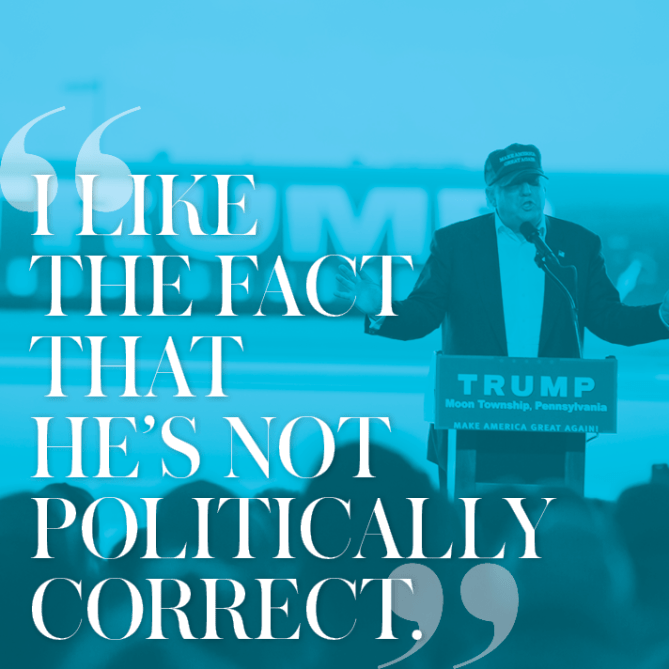 There you have it: A peek into why Trump has won the support of young American women—and this is just a glimpse of a few who were willing to be interviewed. Others declined, possibly for fear of a phenomenon Alicia mentioned. “I’ve noticed that there are many silent Trump supporters—people who are afraid to speak out for fear of people’s judgment,” she says. “But Trump became the Republican nominee because people really do love him, and truly believe he’ll make American great again.”
